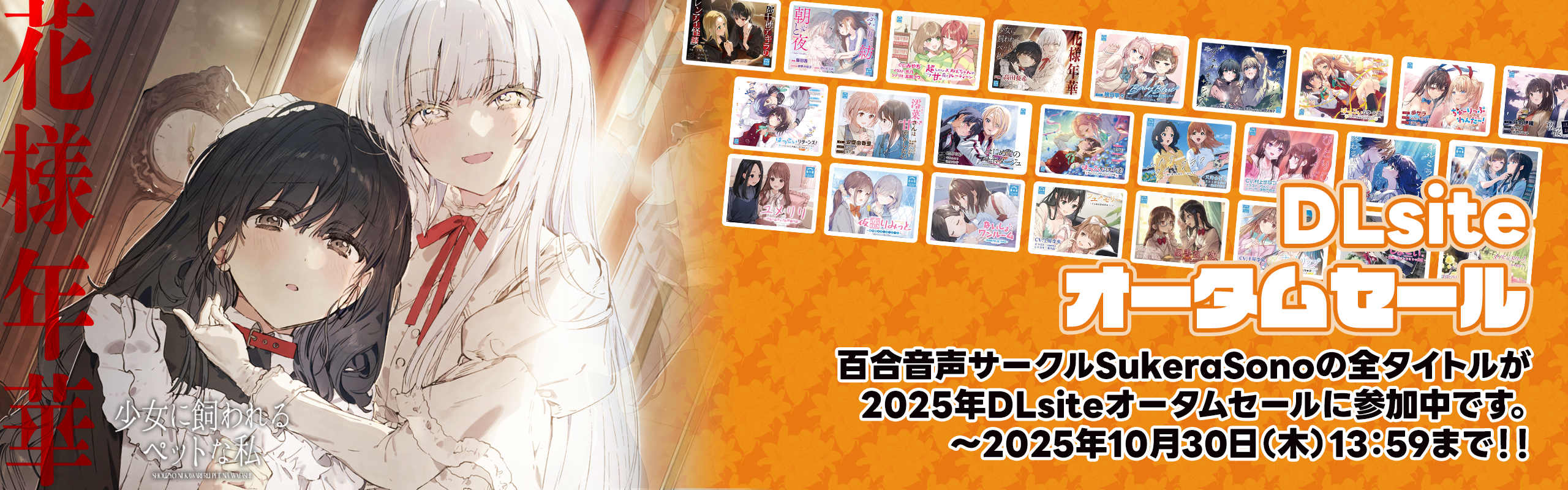 SukeraSono 百合音声サークルSukeraSonoの全タイトルが2025年DLsiteオータムセールに参加中です。2025年10月30日(木)13:59まで!!