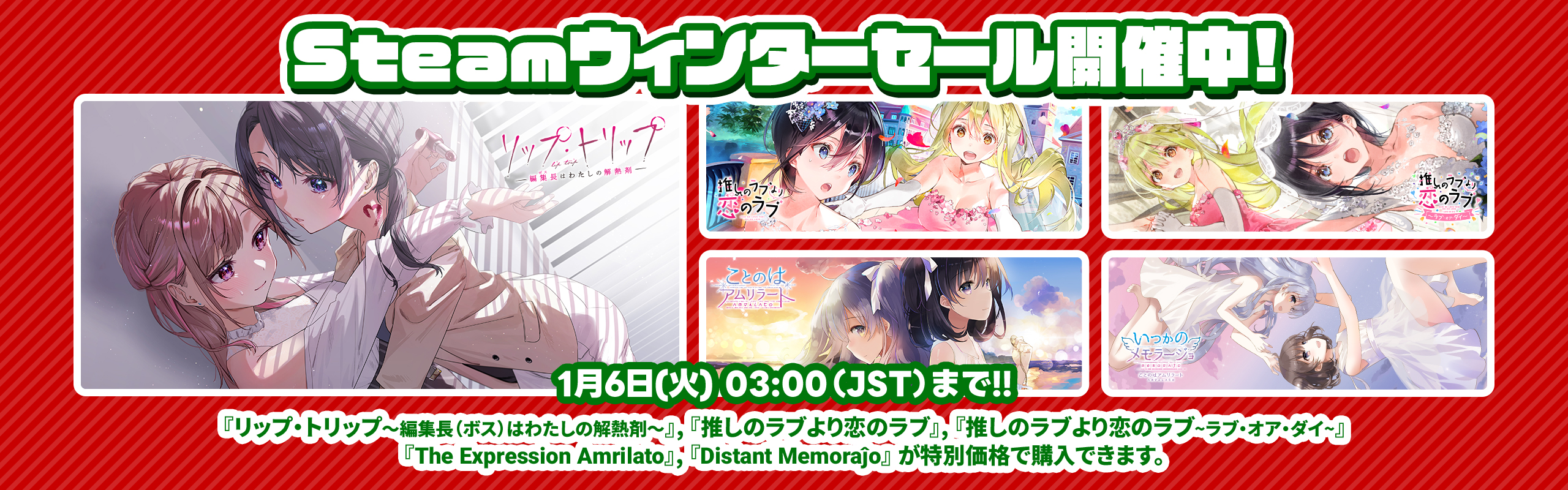 ことのはアムリラート Steamウィンターセール開催中!1月6日(火) 03:00(JST)まで!!『The Expression Amrilato』特別価格で購入できます。