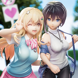 APEX社企画製作の元、イラストレーターDSマイル氏をキャラクターデザインに起用した王道百合コメディAVG『推しのラブより恋のラブ』より、ソシャゲのガチャに大金を投入しつつも、推しは絶対引けない不運なオタクOL・「速星 あくる」と、そんなあくるの前に突然現れた、ガチャ運最強ギャル・「古館 恋」、カップル二人が腕を組みながら一緒にフィギュア化デビュー!